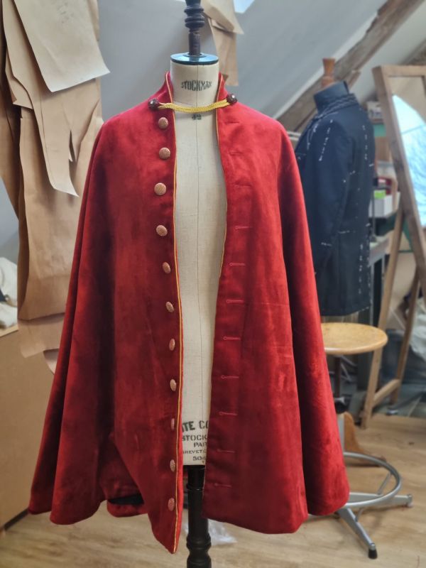 Le métier de costumier implique une connaissance approfondie de l’histoire du costume et des textiles, grâce à de solides recherches documentaires et des techniques de coupe adaptées. Pour une pièce de répertoire précise, les créations emblématiques – pourpoing, culotte, redingote, vareuse, veste gilet, manteau – sont imaginées sur mesure pour reconstitution. Un travail soigné des volumes, des manches, des plastrons et des bas est réalisé sur chaque modèle.