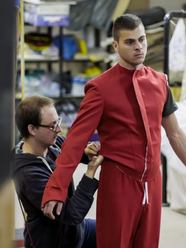 Pour des créations plus modernes, nous concevons des blazers, pantalons, culottes revisitées et pantalons modernes. Le costumier joue sur les matières, les lignes et les détails pour traduire et servir l’univers du metteur en scène.